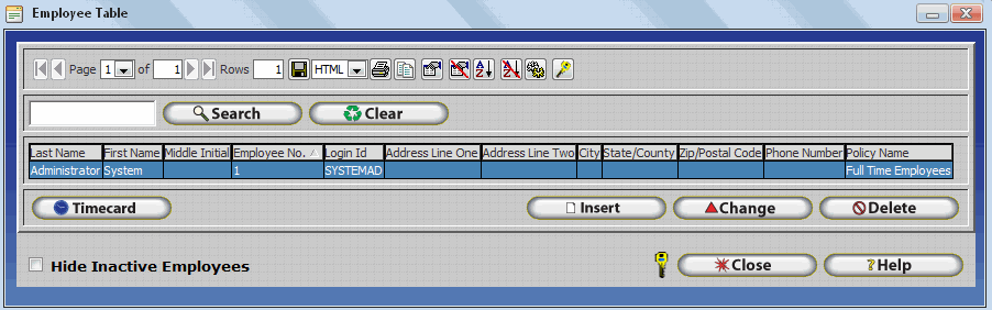 Hide Inactive Employees - When this option is checked inactive employees will not be listed in the employee table.