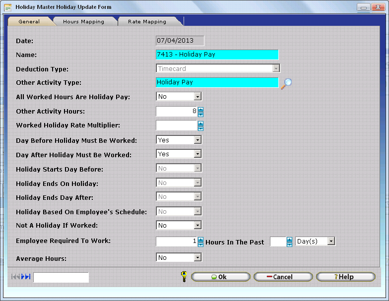Job Costing makes it possible for the user to track employee hours under various levels. Job Costing is generally used in businesses where employee labor costs are of special interest when compared to the cost of finished goods such as manufacturing or production related organizations. Even though Job Costing adds a great deal of functionality to the InfiniTime Application it is not used by all companies and as such is disabled by default. Job Costing related fields such as Job and Task will not be displayed within the application if Job Costing is disabled.