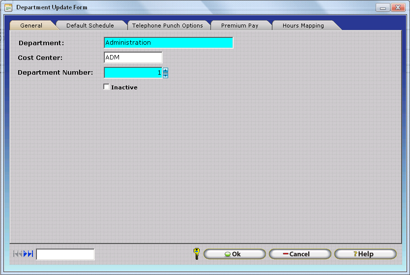 Departments within InfiniTime are used as the first Job Costing Level. It should be noted that departments are a required field within the application and as such all employee activity will be associated with a Department. It is important to keep this information in mind when using Departments for Job Costing purposes. Since all employee activity will be associated with a Department steps should be taken to ensure InfiniTime Departments correspond to the highest level of Job Costing information.