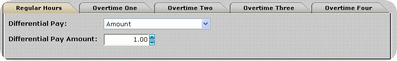Differential Pay Amount - This field will allow you to enter the amount of the pay according to the selected differential pay type, for example, if you had selected amount for differential pay a dollar amount would be entered into this field. Refer to the above examples for usage.