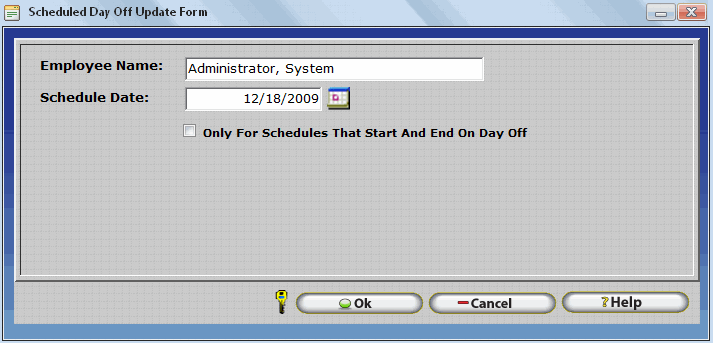 Schedule Date - Enter the date you wish to add a day off for by typing in the Schedule Date Field or using the Calendar Button.