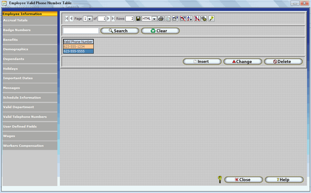 Delete - Deletes the selected Valid Telephone Number from the employee's profile.