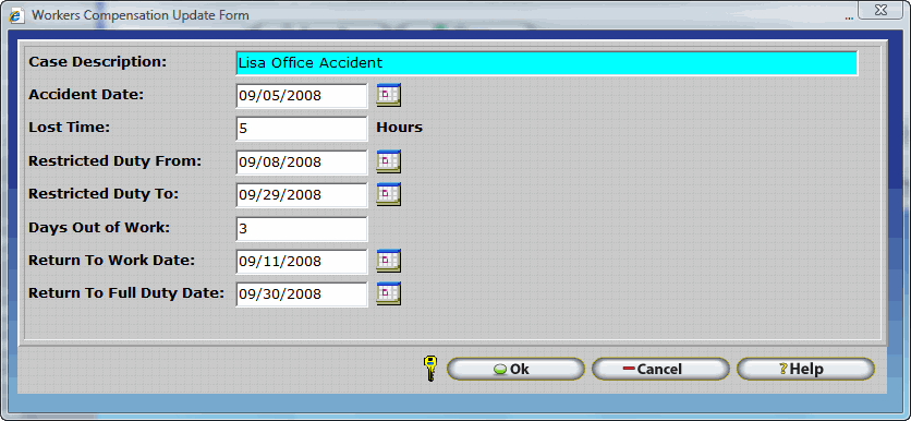 The Workers Compensation Section of the Employee Update Form permits InfiniTime administrators to keep record of incidents which lead to a workers compensation claim. These details will be kept on record in the employee's profile.