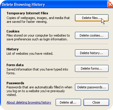 To Clear Temporary Internet Files within Internet Explorer 7: